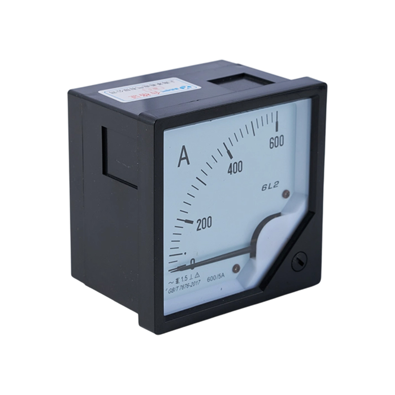El amperímetro de 600 A de la serie 6L2 está diseñado para una medición de corriente clara y confiable en sistemas de distribución de energía y control eléctrico. Con unas dimensiones de 80 × 80 mm y un tamaño de corte del panel de 76 × 76 mm, se puede instalar fácilmente en paneles y armarios de distribución estándar. El dial analógico indica directamente la corriente que fluye a través del circuito con una posición precisa del puntero, lo que permite a los operadores leer el valor de un vistazo. Además, el movimiento suave y continuo del puntero refleja intuitivamente la tendencia de los cambios actuales, mostrando claramente la dirección, velocidad y fluctuaciones de la corriente durante la operación.